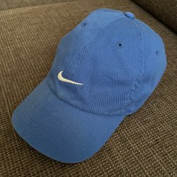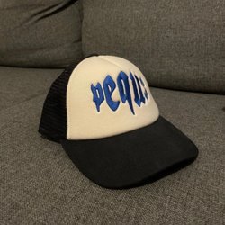 En Fighter keps med en mörkblå färg på toppen och en ljusbrun färg på skärmen. Kepsen har en justerbar rem baktill för att passa olika huvudstorlekar. På framsidan finns en broderad logotyp med texten ”FIGHTER” och ”ET SVENSKA MILJÖDACKET”.