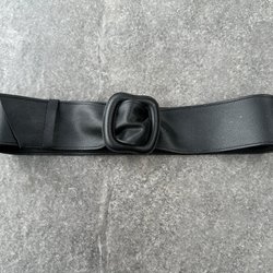 Rött stretchigt 50/60-tals vintage bälte i imitationsläder. Det har en rynkad design och ett spänne i metall. Spännet har lite färgavskav. I övrigt är bältet i fint använt skick.