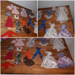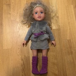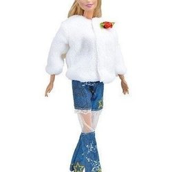 Ett komplett set med dockkläder. Inkluderar en sporttopp, en svart jacka, ett par svarta byxor, ett par stövlar och en liten väska.