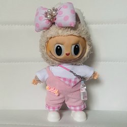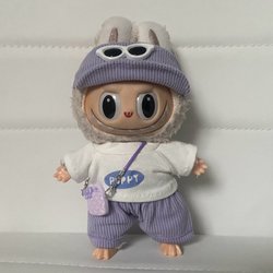 Fina hängselbyxor,tröja,keps och hängsmycke handkontroll som passar till Labubu dockor 15-17 cm som innehåller följande: