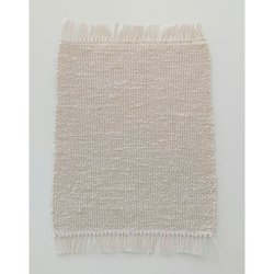 Virkad av vitt bomullsgarn. Runt filten har jag virkat en dekorativ spetskant.