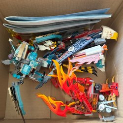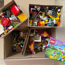 En kartong full med blandade Legobitar. 1,5 kg.