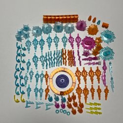 Ett sortiment av dekorerade LEGO-brickor från Star Wars-teman. Perfekt för att lägga till detaljer i dina LEGO-byggen.