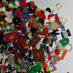 En stor låda full med Lego minifigurer! Perfekt för den som vill utöka sin Lego-samling eller behöver reservdelar. Här finns en mängd olika karaktärer och tillbehör för att skapa egna äventyr.