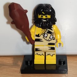 LEGO minifigur föreställande en man med mörkbrunt hår och glasögon och en 100 sedel i handen. Han bär en grå kavaj över en randig fångdräkt med nummer 319. Svarta ben och svarta händer. Figuren står på en svart LEGO platta.