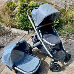 En barnvagn i camouflageutförande. Perfekt för promenader i alla typer av terräng.