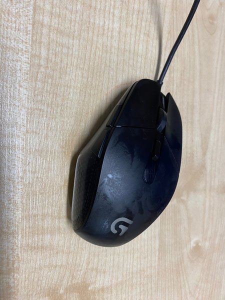 Gamingmus från Logitech G. Musen är svart och har en kabelanslutning. Den har flera knappar och ett scrollhjul.