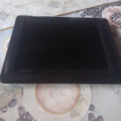 Digital fotoram med fjärrkontroll och strömadapter. Perfekt för att visa dina favoritbilder.