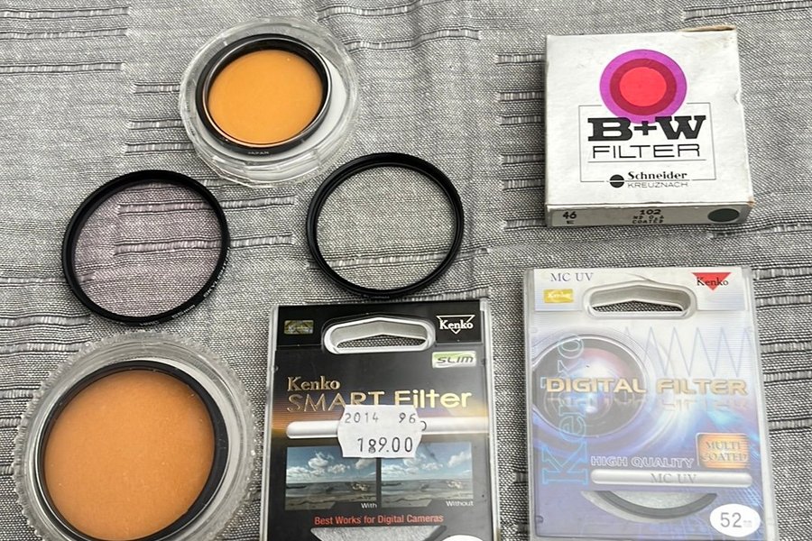 Diverse kamerfilter säljes. Inkluderar filter från Kenko och B+W. Se bilder för detaljer.