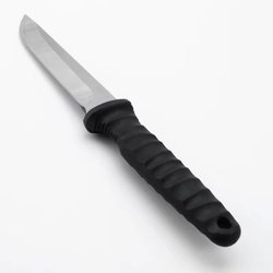 Tre knivar med röda och orange handtag. Dom har använts till fiske men dom får hitta ett nytt hem nu. Till dom som är intresserade och vill väsa osv.