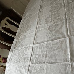 Vacker vit linneduk damast Klässbols(?) med lyster 150x146cm - Oanvänd!