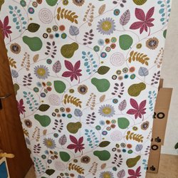 2 längder 140 cm breda och 200 cm långa. Mönstret är tryckt på kraftig 100 % bomullsväv.