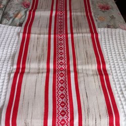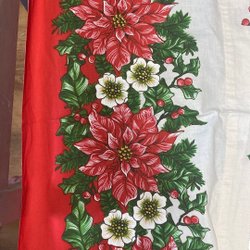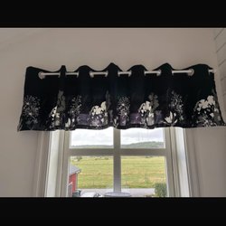 Gardinkappa röd med vi spetskant. Kanal för gardinstång. Mått: 182 x 44 cm.
