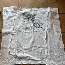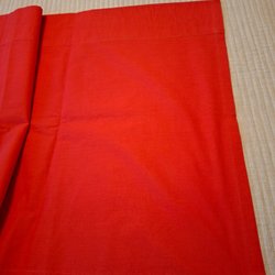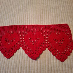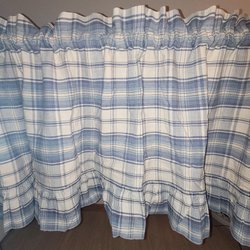 Gardinkappa i bomullschintz som är 3 meter och 44 cm lång och 77 cm hög med upphängning för fingerkrokar.