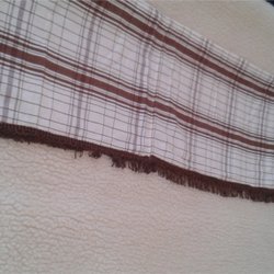 Gardin kappa med rutigt mönster i vitt, rött, grönt och ljusblått. En vit spetsdetalj finns längs en av kanterna.300•40