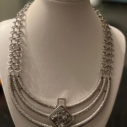 Gardiner beiga med silver mönster. Tillverkade av 100% polyester. Gardinerna har öljetter för upphängning. De är ljusgenomsläppliga. Ser ut som linne lite tyngre fall.