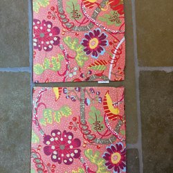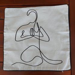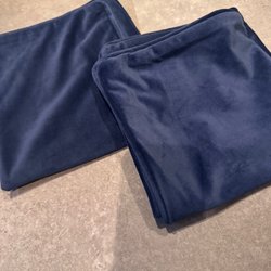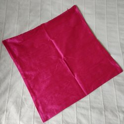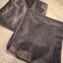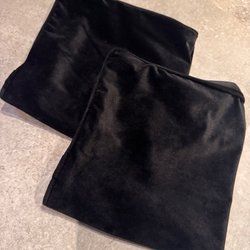 Två kuddöverdrag. Ett i sammet och ett med broderade blommor.