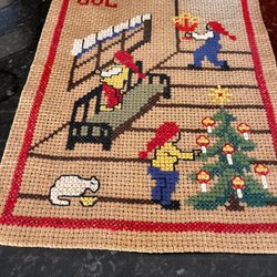 Mäter 155 x 164 cm. Tvättat av mig. Arv efter sömmerska. Fint kvalitetstyg med stadga. Svårt att få rätt färg med själv googlat och klarblått stämmer bäst. Kan finnas lätt doft av sköljmedel.