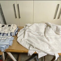 Pläden består av 150 virkade olika rutor i bomullsgarn