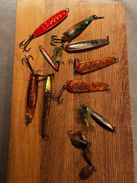 Säljer ett urval av fiskedrag i olika färger och storlekar. Passar för olika typer av fiske. Se bilder för detaljer.