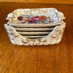 3 söta äggkoppar, Varje ägghållare har unik dekor, inklusive blommor och en fågel. Fin fint skick!!