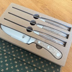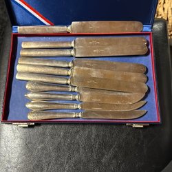 Bestik, Knive, 6 stk knive med teak skaft i original æske sælges