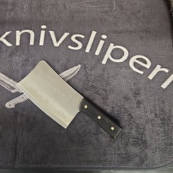 Skärbräda med tillhörande kniv. Mått framgår av bilderna.