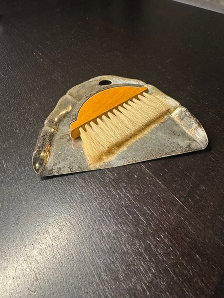 Detta är ett vintage bordsborstset bestående av en skyffel och en borste.