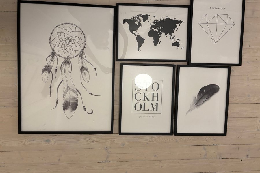 5 tavelramar och posters från Desenio. Fint skick, inga skavanker. Säljes som ett paket.