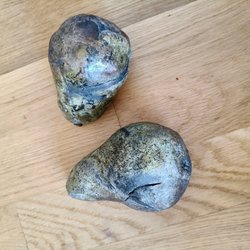 Okänt material, ca 12,5 cm hög och diam ca 14 cm.