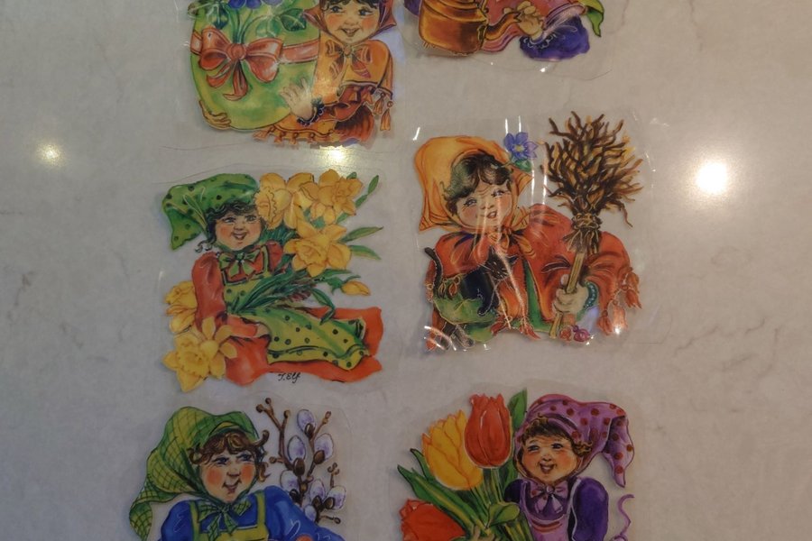 Vintage dekaler med påsk motiv för kylskåp/ fönster etc. Återanvändbara. Storlek ca 8×8 cm