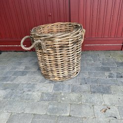 Flätad korg med handtag och detaljer i rep. Korgen är 50 cm hög och har en diameter på 45 cm.