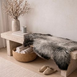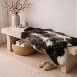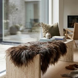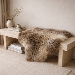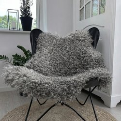 Helt nyt smukt og unikt lammeskind - produceret i Danmark. Skindet har en blød tekstur og naturlige farvevariationer i nuancer af brun, grå og beige, hvilket giver et varmt og indbydende udtryk. Bagsiden er af læder.