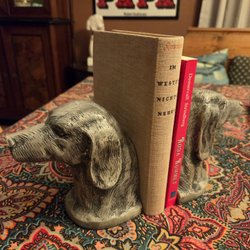 Ett parbokstöd elefantmotiv. Perfekt för att ställa upp hyllor i hemmet. Kommer från dödsbo