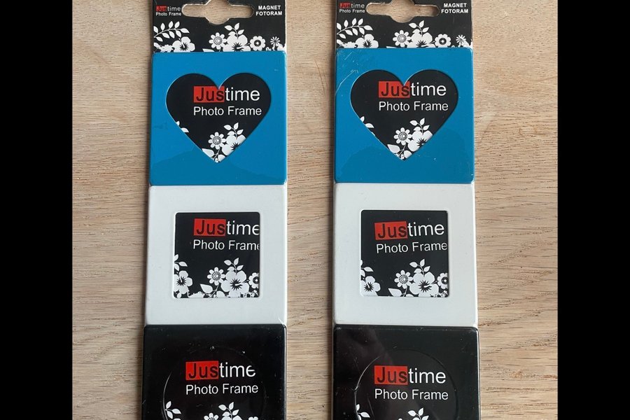 6 st magnetiska fotoramar för att t ex sätta små foton på kylskåpet. Fina att ge bort skolfoton på barnen i till julklapp. I oöppnade förpackningar.