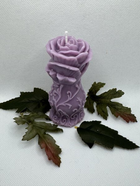 Ett ljus format som en ros. Dekorativ och stämningsfull.