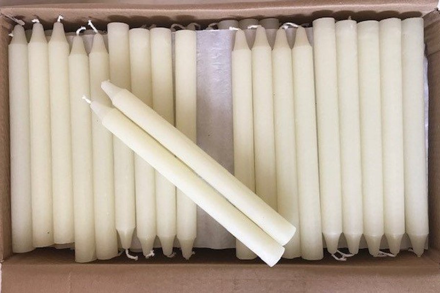 100 stycken rustika beigea ljus. Ljusen väger totalt cirka 7,5 kg.