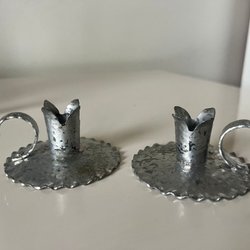 Dekorativa ljusstakar som passar perfekt för att skapa en mysig atmosfär i hemmet. De har en unik design med 4 runda glas bollar. Stora och maffiga att ha I fönstret med ett stort blockljus på. Ljusstakarna är inte antika men är köpt för många år sedan genom en antikhandlare som köpte upp saker från utlandet. Ljusstakarna är ca 42 cm höga och plattan som blockljusen ska stå på är ca 14 cm I diametern. Den ena ljusstaken är inte spikrak, den är lite sne, se sista bilden. Men övrigt är ljusstakarna i mycket bra skick!