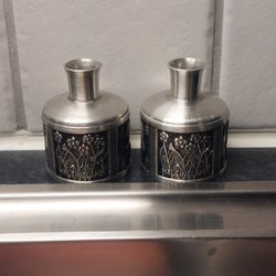 Dekorativa ljusstakar som passar perfekt för att skapa en mysig atmosfär i hemmet. De har en unik design med 4 runda glas bollar. Stora och maffiga att ha I fönstret med ett stort blockljus på. Ljusstakarna är inte antika men är köpt för många år sedan genom en antikhandlare som köpte upp saker från utlandet. Ljusstakarna är ca 42 cm höga och plattan som blockljusen ska stå på är ca 14 cm I diametern. Den ena ljusstaken är inte spikrak, den är lite sne, se sista bilden. Men övrigt är ljusstakarna i mycket bra skick!