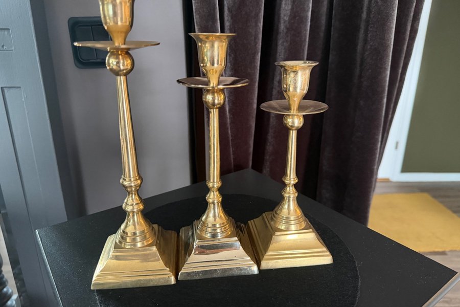 3st Ljusstakar mässing. Putsa får man göra själv :) den är mitten är påbörjad putsning!