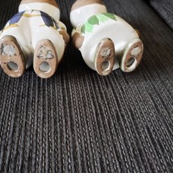 2 stycken koppar ljusstake, märke okänd. Höjd 9cm och som bredaste med fötterna 8.5 cm.