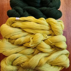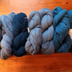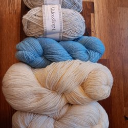 Säljer fyra nystan lösspunnet ullgarn, det svarta ungefär som Lovikkagarn, de bruna något tunnare. Vikt 290g.