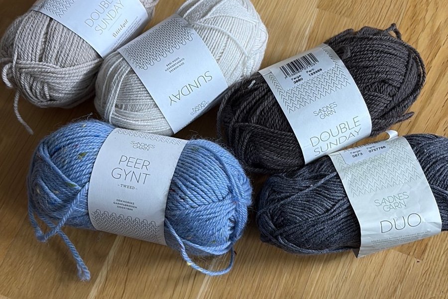 Här är ett knippe garn från Sandnes Garn. Inkluderar Double Sunday, Sunday, Peer Gynt Tweed och Duo.
