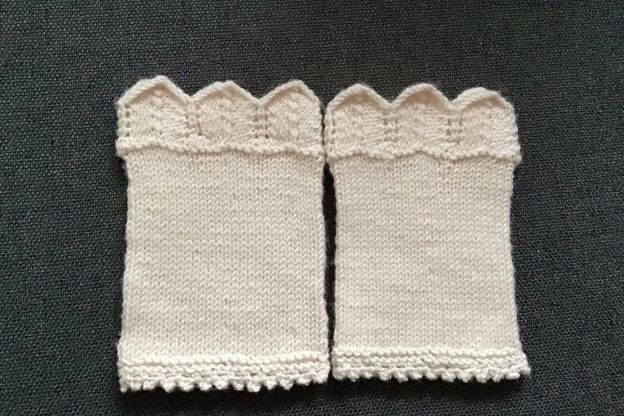 Ny stickade handledsvärmare i baby merino ull puder rosa .