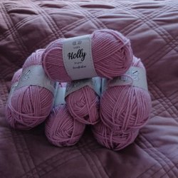 Mjukt rosa garn 5 st Angorina lyx, 1 st akrylgarn i blanda nyans + en liten ljusrosa rest.
