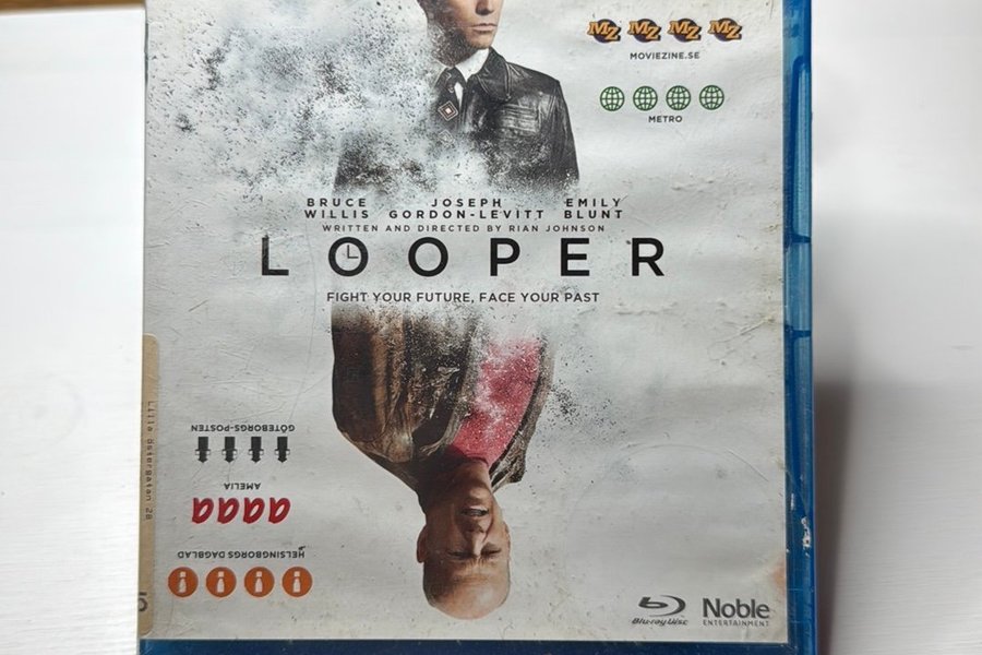 Blu-ray-utgåva av filmen Looper med Bruce Willis, Joseph Gordon-Levitt och Emily Blunt. Regisserad av Rian Johnson.