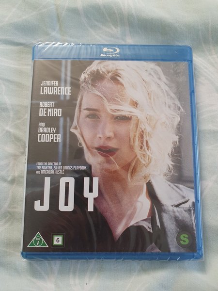 Blu-ray-utgåva av filmen Joy med Jennifer Lawrence, Robert De Niro och Bradley Cooper.