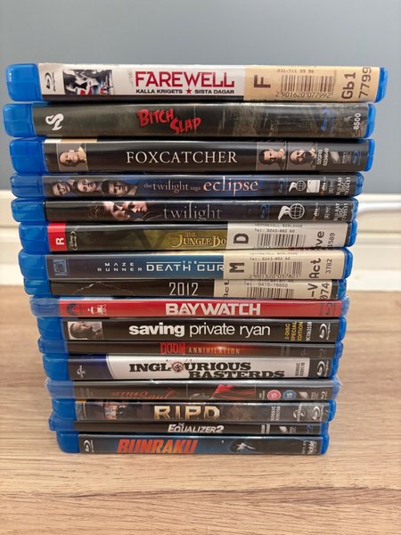 Blu-ray filmer inklusive Farewell, Bitch Slap, Foxcatcher, Twilight Saga Eclipse, Twilight, The Jungle Book, Maze Runner Death Cure, 2012, Baywatch, Saving Private Ryan, Doom Annihilation, Inglourious Basterds, Better Call Saul, RIPD Equalizer 2, Bunraku.