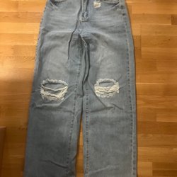 Aldrig använd, inte ens prövad som färdigsydd. Passar en mindre nättare brud i storlek 32/34. Figursydd och uppsydd för en brud på 160cm med cirka 5-10cm höga klackar. Då syns då och med låga skor går klänningen svävandes precis vid marken.