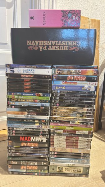 Stor DVD samling med film og serier. Huset på Christianshavn har nogle brugsspor på nogle af diskene